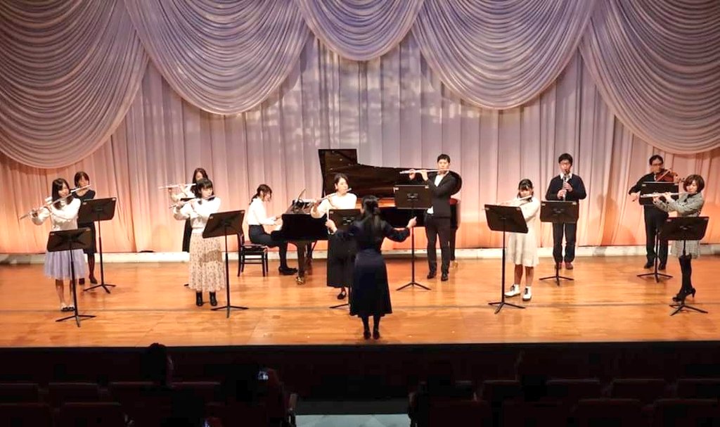 通常レッスンはもちろん、吹奏楽部や一般楽団のフルートパートの皆さんへの演奏指導や全体合奏指導も大好評を頂いております。
